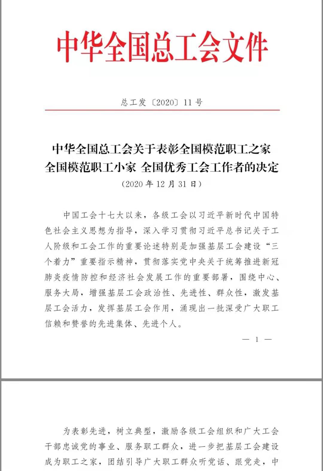 Recently, from the Chinese Federation of Trade Unions in commendation documents learned that the Sha City Light Industry Machinery Co., Ltd. processing workshop trade union was awarded the honorary title of "national model worker home